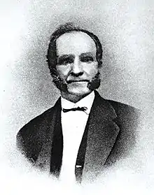 In 1860, Larpenteur became partner in an independent fur trading venture, Larpenteur, Smith & Company. The outfit went west over St. Paul and Pembina, and Larpenteur erected a trading post at Poplar River. Back in St. Louis in 1861, the company was reorganized as Larpenteur, Lemon & Company, due to dissension among the original partners. The same year, 1862, Larpenteur became a fur trader with a new company, La Barge, Harkness & Company.[6][7] In 1864 Larpenteur was back at Fort Union, now as Bourgeois or manager. Within a short time, however, the fort was sold the new Northwestern Fur Company, and Larpenteur resigned. In 1866 he served as an Assiniboine interpreter for the Indian Peace Commission, and the following year he became a fur trader for Durfee & Peck, but was fired after a conflict.[8] In 1869, Larpenteur brought his family from Iowa to Fort Buford, where he established a trading post. New regulations in 1870 limited the number of traders to one approved sutler per military post, and Larpenteur applied to the secretary of war, William W. Belknap for approval. This was, however, refused, and Larpenteur returned with his family to Iowa, where he died in 1872.[9]