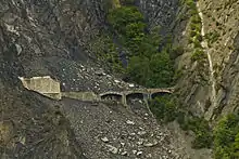On 26 October 2010, shortly before the end of the season, a landslide destroyed the Viaduc de la Clapisse and parts of a tunnel entrance.[1] In June 2017, the General Council of the Department of Isère announced that the company Edeis had been chosen to repair the railway and take over its operation, with the aim of having it operational again for the 2020 season.[2] Half the line eventually reopened in July 2021, from the top at La Mure as far as the viewpoint at Le Grand Balcon.