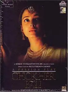 Chokher Bali (lit. sand in the eye, fig. constant irritant) is a 2003 Indian Bengali language drama film based on the 1903 novel Chokher Bali by Rabindranath Tagore. It was directed by Rituparno Ghosh in 2003 and stars Aishwarya Rai as Binodini and Raima Sen as Ashalata. Ashalata and Binodini refer to each other as Chokher Bali. The other major characters are played by Prosenjit Chatterjee as Mahendra, Lily Chakravarty as Rajlakshmi, the mother of Mahendra, Tota Roy Chowdhury as Behari, Rajlakshmi's adopted son and Swastika Mukherjee in a cameo role. The film was later dubbed into Hindi and was released internationally in that language.