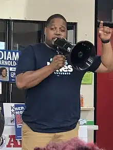 Christopher Michael Jones was the Democratic Party nominee for Governor of Arkansas in the 2022 election.[1] Born in Pine Bluff, Arkansas,[2] he attended Morehouse College and graduate school at the Massachusetts Institute of Technology. He previously worked at the Arkansas Regional Innovation Hub, from which he resigned in April 2021. On June 15, 2021, Jones announced that he was entering the Democratic primary for Governor of Arkansas.[3] He won the primary but lost the general election to Sarah Huckabee Sanders.