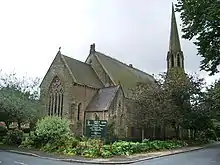 Christ Church is in Victoria Road, Fulwood, Preston, Lancashire, England. It is an active Anglican parish church in the deanery of Preston, the archdeaconry of Lancaster, and the diocese of Blackburn.[1] The church was built in 1854–55 and designed by Myres and Veevers. It is constructed in stone with some polychromy in the dressings. The north steeple has a square porch at the base, and becomes octagonal as it rises. There are no aisles, and inside the church is a hammerbeam roof.[2] In 1937 the Lancaster practice of Austin and Paley added a Chapel of Remembrance.[3][4]