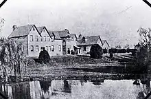 The Provincial Government voted £1,500 to building the hospital in Christchurch in 1861. The initial building was a two-storied "barn-like structure" on Hagley Park at Riccarton Avenue. It opened on 1 June 1862, after "Hands off Hagley" protests by citizens.[7] The last of the original buildings were demolished in 1917.[8]