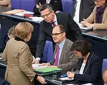 In November 2017, Schmidt angered most politicians by breaking an agreement not to back a European Union proposal to extend the use of glyphosate for another five years, a measure opposed by Environment Minister Barbara Hendricks of the SPD, who had secured a guarantee of a non-positive vote just minutes before;[6] it is usual practice that Germany abstains in EU votes if ministers from different governing parties disagree on a policy. Following the incident, Chancellor Merkel publicly scolded Schmidt, arguing that he should not have voted in favor against the wish of his colleague and in breach of government instructions. Schmidt's connections to the agricultural lobby have been part of criticism ever since.[7][8]