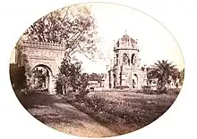 Earliest photographic image of Columbo Sahib's mausoleum to the right, and Moorish arch on the left. Photo taken in 1875 by Johnston & Hoffmann, Calcutta