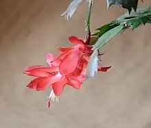 Christmas cactus, also known as orchid cactus, often blooms around Christmas time. There are a number of different cactus species sold as "Christmas cactus".