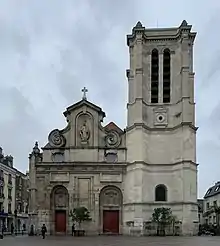 The 30-meter-high squared tower, dated 1541 according to an inscription on its base, is said to have been built by Louis XI. In 1623, the Oratorians settled in the buildings given by Francis II of Montholon. A Jesuit-style façade was erected around 1628. A 9-meter-high spire was added in the 19th century but was destroyed by a fire in 1900.[3]