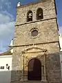It is an example of the Manueline style. The main door was added later during the Renaissance period. The interior features twisted columns, resembling the rigging of a ship, as well as six Baroque altarpieces adorned with azulejo tiles. On the exterior, one can also observe the so-called false machicolations, gargoyles, and pinnacles, among other architectural elements.[2]