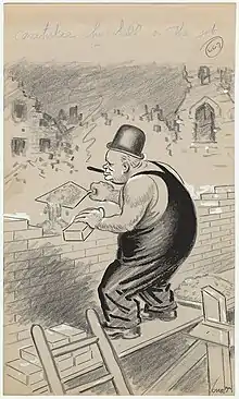 Churchill's principal theme in the election campaign was always the perils inherent, as he saw them, in socialism, but the Conservatives had to offer an alternative and Churchill stressed to his colleagues that a Conservative government must be constructive.[48] He saw the housing shortage as the main issue and announced his commitment to rebuilding in a broadcast on 13 June but, as with the Gestapo speech on 4 June, he ruined the effect by again insisting that Labour would deploy some form of political police to control the nation.[28] On 3 July, he called for an intensive effort by his Cabinet colleagues to promote housebuilding[49] and prepare legislation for both national insurance and the NHS, but his concerns in these areas were unknown by the electorate to the extent that, when he addressed an audience in the Labour stronghold of Walthamstow that evening, he was almost forced to abandon the event because of booing and heckling.[50] Many commentators felt that Churchill's election speeches lacked "vim" and there is a view that he was much more interested in what was happening in eastern Europe than in the United Kingdom, but eastern Europe was Churchill's primary concern at Potsdam.[51]