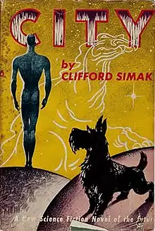 City is a 1952 science fiction fix-up novel by American writer Clifford D. Simak. The original version consists of eight linked short stories, all originally published in Astounding Science Fiction under the editorship of John W. Campbell between 1944 and 1951, along with brief "notes" on each of the stories. These notes were specially written for the book, and serve as a bridging story of their own. The book was reprinted as ACE #D-283 in 1958, cover illustration by Ed Valigursky.