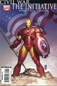 Civil War: The Initiative is a 2007 - 2008 comic book crossover storyline published by Marvel Comics. Running through a number of Marvel's then-ongoing monthly series, as well as numerous tie-in books, the story, which was initiated by an eponymous one-shot, serves as an epilogue to Marvel's "Civil War" storyline, and as a launch point for new series such as the Mighty Avengers, New Avengers, and Omega Flight, as well as the Warren Ellis reinvention of Thunderbolts.