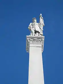 The soldier figure atop the monument's obelisk.