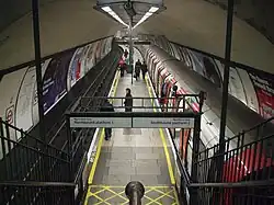 The platforms at Clapham North tube station. This platform and the one at Clapham Common are the narrowest on the London Underground.