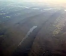 Oblique air photo of De Hart Reservoir, Clark Creek, facing southwest, with Susquehanna River in background