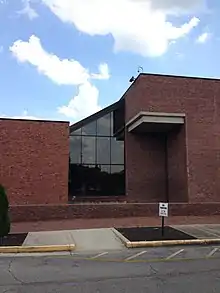 The Cleo Rogers Memorial Library, also known as the Main Library, is the flagship library of the Bartholomew County Public Library system. It includes a branch in Hope, Indiana, and a bookmobile that serves the county. The building was designed by I. M. Pei & Partners and constructed by Dunlap & Company, completed in 1969, and dedicated in 1971. It is notable for its design of red brick with concrete details and its Library Plaza, an urban space punctuated by the sculpture, "Large Arch" by Henry Moore. It is named for Cleo Rogers (1905-1964) who was the county librarian for 28 years and assistant librarian for nine years.