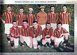 Liberal Argentino remained in Primera División until 1928 when it was relegated to the second division.[6] Nevertheless, the club returned to the first division in 1933, playing in the official league (that had remained amateur unlike professional Liga Argentina de Football) although the team did not make a good performance.[7] One year later, Liberal Argentino finished 8th.