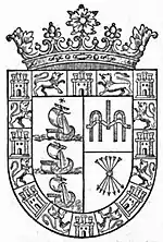 The coat of arms of Panama City was granted by King Charles I of Spain via Royal Charter issued in Burgos, on 15 September, 1521. The coat of arms was granted as part of the municipality achieving the status of City.[1][2]