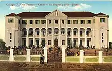 By 1910 demand required larger premises, so the Parish Hall, behind the parish church, was used. In 1911 the school was named Carmo after the Italian former parish priest of Caxias, Carmine Fasulo. In 1913, an evening course for adults was created and in 1914, the school started hosting candidates for admission to the Lasallian Order.[3]
