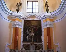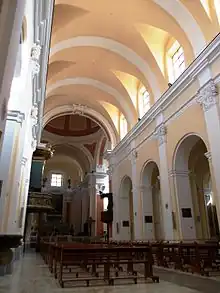 The church had, in addition to the high altar, twenty other altars distributed in as many chapels.[12] In a niche to the side of the high altar on May 5, 1596, during a solemn ceremony, the relics of several saints from the falling cathedral of the Holy Cross in Telese were placed.[11]