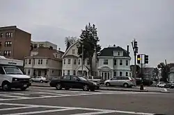 The Columbia Road–Bellevue Street Historic District encompasses a collection of brick residential apartment houses on Columbia Road and Bellevue Street in the Dorchester neighborhood of Boston, Massachusetts. Arrayed mainly on Columbia Road between Wheelock Avenue and Bodwell Street, south of the Uphams Corner commercial area, area collection of primarily late 19th and early 20th-century multiunit residential buildings, built when the area was developed as a streetcar suburb. Most of these are Colonial Revival masonry or frame buildings three and four stories in height, although some exhibit Queen Anne features. There are a few older Greek Revival buildings in the district, and a number of apartment blocks built in the 1920s during a second phase of development.[2]
