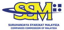 The Companies Commission of Malaysia (Malay: Suruhanjaya Syarikat Malaysia, abbreviated SSM) is a statutory body formed under an Act of Parliament that regulates corporate and business affairs in Malaysia. The SSM was formed in 2002 under the Companies Commission of Malaysia Act 2001, assuming the functions of the Registrar of Companies and Registry of Business.[1]