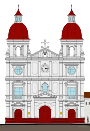 The first church dates from between 1662 and 1668, and it became a center of evangelisation for the first priests and missionaries arriving from Europe. 125 years later, on March 8 of 1793, the then bishop of Popayán, Ángel Velarde y Bustamante, made a pastoral visit to the church and was affected by what he saw as evil spirits in the church.[1] Obtaining consent, he saw that the old temple was demolished and asked for administrative and communal funding and support to erect a new church in its place. The bishops Jose Pablo de Villa and Jose Felix de Mejía would be in charge of administering these resources, in addition to directing and handling the work of the new parochial church.[1]