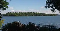 Coney Island of the West is an island in Lake Waconia in the U.S. state of Minnesota that was developed into a summer resort with its heyday from the 1880s to the 1920s. It continued operating up to 1960. The 31-acre (13 ha) island is part of Waconia Township just .5 miles (0.80 km) off the shore from the city of Waconia. It was listed on the National Register of Historic Places in 1976 for its local significance in the themes of commerce and entertainment/recreation.[2] The island site, with its ruins of hotels, cottages, and parks, was nominated for being one of Minnesota's most popular early resorts, and an early expression of the trend of urban dwellers journeying to Minnesota's lakes and parks for recreation.[3] Lambert Naegele (an immigrant from Germany who published German language newspapers), Reinhold Zeglin (also an immigrant from Germany), and Emile Amblard (originally from France) developed resort buildings and attractions on the island. The best preserved building from this era, however, is the Emile Amblard Guest House on the mainland.