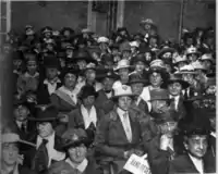 The conference included 102 different women's societies for war service.[4] There were women present officially representing the nations at war: British, French, American, as well as Belgian, Italian, Romanian, Polish, Serbian, and Montenegrin. Russia was represented as the women of the world did not bar their Russian counterparts from the association of the free. Others included women from the Republics of South America, Asia, and Africa.[2] Women war workers from the American YWCA, the American Red Cross, YMCA, and the American French Fund for Wounded,[2] made up about three-fourths of the assembly according to the Paris Herald.[1]