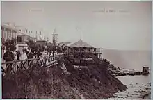 Three different buildings were constructed in the district to house a casino, with the first structure being erected of wood in 1880. Considered a symbol of the city of Constanța, the current structure was built in Art Nouveau style, designed and built according to the plans of Daniel Renard and inaugurated in August 1910.[2] The current Casino was used for gambling operations for 38 years, with interruptions due to the two world wars: attacked and bombed by Bulgarian and German troops in World War I, ravaged in World War II, and, at one point, acting as a makeshift wartime hospital. In 1948, it was transformed into a community centre, and in 1960, it was handed to the National Office of Tourism, which converted it into a restaurant. The last major repairs took place in 1986–1988, and the building was abandoned until 2019. Currently, it is under renovation again.[3]