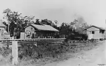 The station building was extended again c. 1916. By this time the 48-foot (15 m) building no longer had a goods shed section, and was instead divided into a ladies room (12 feet (3.7 m) long), waiting shed (19 feet (5.8 m) long), and an office (17 feet (5.2 m) long), the latter having already been expanded from 10 to 16 feet (3.0 to 4.9 m) wide. This configuration of ladies room-waiting shed-office was a common feature of Queensland Railway's standard designs, although the size of each section could be increased, and smaller versions might dispense with one or more of the components. A photograph taken in 1911 shows the goods shed and the station building in its 48-foot (15 m) configuration, with the widened office. It also shows an unknown building, no longer extant, just to the north of the station building.[2]