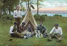 Aboriginals making lacrosse sticks, Cornwall Island, Ontario, c.1910