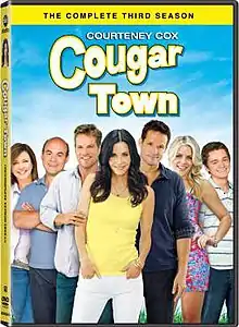 The third season of Cougar Town, an American sitcom that airs on ABC, began airing on February 14, 2012 and concluded on May 29, 2012 with a 1-hour episode.[2] Season three regular cast members include Courteney Cox, Christa Miller, Busy Philipps, Brian Van Holt, Dan Byrd, Ian Gomez, and Josh Hopkins. The sitcom was created by Bill Lawrence and Kevin Biegel. This is the final season to air on ABC before it moved to TBS.[3]