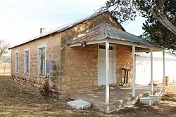 Farmer Mathias Schmidt donated the land for a Crabapple school, earning the privilege by running a footrace with neighbor Crockett Riley who had also offered to donate land. Area families built the native limestone structure with their own labor. The 1878 school had a single classroom, with an adjoining room for the teacher living quarters.[3] An outer staircase led to a second story storage space. An additional room was added later. A second limestone school was built in 1882 that also served as a Lutheran church, until the St. John's congregation erected its own building in 1887. Twenty-eight teachers taught at Crabapple School before it consolidated with Fredericksburg Independent School District.[4]