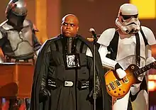 The song won a Grammy Award for Best Urban/Alternative Performance in 2007 and was also nominated for Record of the Year, which it lost to "Not Ready to Make Nice" by Dixie Chicks.[9] It was also nominated and further won a 2006 MTV Europe Music Award for Best Song. The song was also named the best song of 2006 by Rolling Stone[10] and by The Village Voice's annual Pazz & Jop critics poll.[11] The song was listed at number 11 on Pitchfork Media's top 500 songs of the 2000s. In 2010, it was placed at number 100 in the "updated" version of Rolling Stone's list of "The 500 Greatest Songs of All Time" and ranked at the top position of Rolling Stone's top 100 songs of the decade (2000–2009). "Crazy" was performed at the 2006 MTV Movie Awards, with Danger Mouse and Green dressed as various Star Wars characters.[12][13]