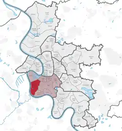 Hamm is an urban quarter of Düsseldorf, part of Borough 3. Hamm is located on the river Rhine, adjacent to the boroughs of Bilk, Volmerswerth, and the central harbour of Düsseldorf. It has an area of 4.10 km2 (1.58 sq mi),[2] and 4,518 inhabitants (2020).[1]