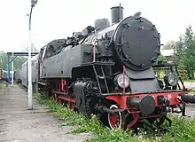 The DRG Class 86 was a standard (see Einheitsdampflokomotive) goods train tank locomotive with the Deutsche Reichsbahn-Gesellschaft. It was intended for duties on branch lines and was delivered by almost all the locomotive building firms working for the Reichsbahn. From 1942 it was built in a simplified version as a 'transitional war locomotive' (Übergangskriegslokomotive or ÜK). The most obvious changes were the omission of the second side windows in the cab and the solid disc carrying wheels.
