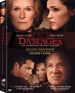 For its second season, Damages was nominated for seven Primetime Emmy nominations at the 2009 Primetime Emmy Awards, with Glenn Close receiving her second Emmy nomination for Outstanding Lead Actress in a Drama Series. Ted Danson also received another nomination, for Outstanding Guest Actor in a Drama Series. Rose Byrne earned her first Emmy nomination for Outstanding Supporting Actress in a Drama Series and William Hurt was nominated for Outstanding Supporting Actor in a Drama Series. The series again was nominated for direction and the show itself was nominated again for Outstanding Drama Series. On September 20, 2009, the show won its fourth Emmy Award when Glenn Close won the Emmy for Outstanding Lead Actress in a Drama Series.[16]