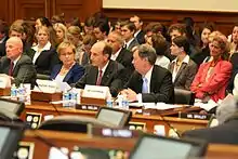 Wolf has been a vocal critic of the Supreme Court's ruling in Citizens United v. FEC, and published an op-ed piece emphasizing the distinction between people and corporations.[32] Wolf reiterated his opposition to corporate personhood at breakfast event in his campaign for governor, joking: "Cape Air and my daughters [are about] the same age... I've never actually confused my daughters for Cape Air."[33] A supporter of adopting a constitutional amendment to overturn the Supreme Court decision, Wolf co-sponsored and voted for a resolution to do so.[34][35] As a guest speaker at a Brookings Institution's summit on Citizens United increase in political spending in 2016, Wolf said a constitutional amendment was vital for changing the political status quo.[36]