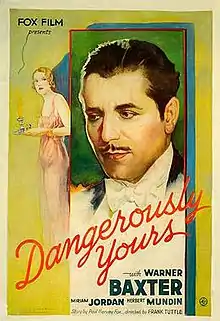 Dangerously Yours is a 1933 American Pre-Code comedy film directed by Frank Tuttle, starring Warner Baxter, Miriam Jordan and Herbert Mundin.[1]
