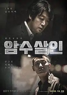 Dark Figure of Crime (Korean: 암수살인; Hanja: 暗數殺人; RR: Amsu-salin; lit. Unknown Murders) is a 2018 South Korean crime drama film directed by Kim Tae-kyun. It stars Kim Yoon-seok and Ju Ji-hoon. It was released on October 3, 2018.[4][5] The film was loosely inspired by the 869th episode of Unanswered, a South Korean investigation television program, which tells a real story that happened in Busan, where murders were never reported, bodies were never found, and investigations never happened.[6][7]