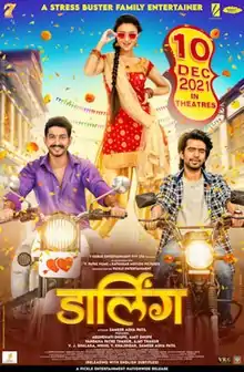 Darling is a 2021 Indian Marathi language romantic comedy film written and directed by Sameer Asha Patil under the banner of 7 Horse Entertainment Pvt Ltd., V.Patke Films and Kathakar Motion Pictures. The film starring Prathamesh Parab, Ritika Shrotri and Nikhil Chavan depicts the comic love story of three characters in a village of Maharashtra.[1] It was theatrically released on 10 December 2021.