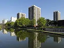 In the early 1960s the northern part of De Beauvoir Town between Buckingham Road and Tottenham Road was rebuilt as the Metropolitan Borough of Hackney's Kingsgate estate. In the late 1960s a larger area west of the canal basin, which contained many small factories, made way for the De Beauvoir Estate. The east side of De Beauvoir Square was also rebuilt as the Lockner Road estate.