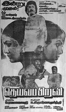 Deivapiravi (transl.Noble Soul) is a 1985 Indian Tamil-language romantic drama film directed by R. Krishnamoorthy, starring Mohan, Radhika, and Urvashi. It is a remake of the Telugu film Devatha (1982).[1] The film was released on 14 April 1985 and ran for one-hundred days in theatres.