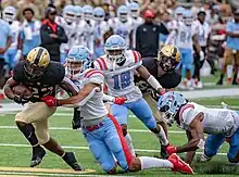 The most controversial aspect of the DSU football program was that it had never been scheduled by potential instate rival University of Delaware for a regular season game. It was highly unusual for two state universities that play on the same athletic tier to not play one another, especially schools that are less than one hour's drive away from campus. Critics charged that this had to do with the fact that Delaware State is a historically black college. Furthermore, supporters of a game between DSU and UD claimed that it would be akin to other in-state college rivalries and would be good for the state.[11] In response to the charges of racism on UD's part, their supporters pointed out that Delaware had scheduled and played regular season games against several other HBCUs such as Morgan State and North Carolina A&T. UD supporters also claimed that DSU's team was not as strong as the Blue Hens, and that UD's program had made commitments to other universities that they had to fulfill. Finally, UD supporters also noted the fact that the two colleges routinely meet in sports other than football.