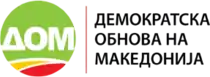 The Democratic Renewal of Macedonia (Macedonian: Демократска обнова на Македонија, Demokratska obnova na Makedonija) is a green-liberal political party in North Macedonia. This party actively promotes the green idea for North Macedonia. DOM's political objectives are: green jobs, renewable energy, human rights, democracy, ecology, tourism, eco-agriculture, women empowerment, culture, more funds for science and education. At their first elections, 5 July 2006, the party won 1.9% and 1 out of 120 seats. From 2008, DOM is part of Coalition run by Macedonia ruling party VMRO-DPMNE. In the parliamentary elections 2008 and 2011 DOM as part of the Coalition won 1 seat. 2016 DOM was part of the SDSM-led "For life in Macedonia" and won 1 seat.