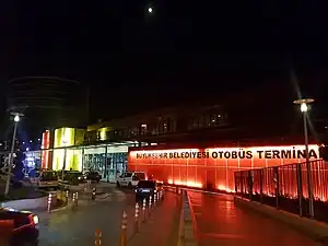 Denizli Bus Terminal (Turkish: Denizli Şehirlerarası Otobüs Terminali) is the intercity bus terminal of Denizli, Turkey. It was demolished in 2011, rebuilt in 2014 and reopened on March 9, 2014.[2] During the period from 2011 to 2014, EGS Park, located approximately 6 kilometers away from the city center, was temporarily used as the terminal service. The terminal has 33 platforms for buses.[1] It is located on the same boulevard as Denizli railway station.