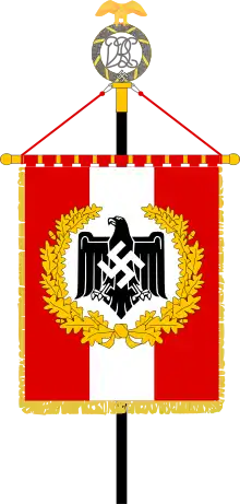The ceremony of "handing over" (Bannerüberführung): This new Sports Office standard supplied the occasion to Dr. Wilhelm Frick, the leader of the Breslau event, to make a speech concerning the further nazification of the NSRL.