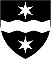 Clement[lower-alpha 10] Argent, two bends wavy gules on a chief of the last three estoiles or Plymouth