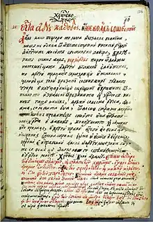 - ↑ Къ читателю от трудившагося преводе. Сей мой оубогой трудъ бе въ преводе съ греческаго на славенскiи iазикъ показанъй аще кому и благоразумниихъ ѝ богомудръiхъ читателей мучится чести, или преписовати молю да не оудивляется зде некоимъ просторечiемъ и на некiйхъ местахъ неправилному сочиненiю еже въсей книзе оупотребися а най паче иностранъемъ некiймъ именамъ и простъiмъ болгарскiймъ наречiемъ въ разглаголствiяхъ обносимимъ яже зрятся не по правилнимъ падежамъ и граматическому сочиненiемъ положена битъi. For more see: Ivan Bentchev (2004) Griechische und bulgarische Malerbücher. Technologie. Die Technologie in den griechischen und bulgarischen Malerbüchern des 16.-19. Jahrhunderts, Museen der Stadt Recklinghausen, Nektarij, Anonymus I und II, Dionysios von Phourna, Georgi Damjanov, Panagiotes Doxaras, Christofor Žefarovič, Zacharij Petrovič, Christo Jovevič, Cod. D. slavo 39, Dičo Zograf, Zacharij Zograf, S. 350, ISBN 3-929040-74-3 (in German).