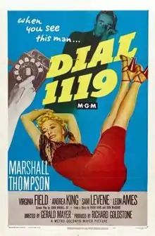 Dial 1119 is a 1950 film noir directed by Gerald Mayer, nephew of Louis B. Mayer. The film stars Marshall Thompson as a deranged escaped killer holding the customers of a bar hostage. The telephone number "1119" is the police emergency number used in the film.