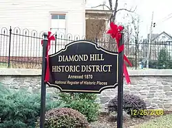 The Diamond Hill Historic District is a national historic district located in Lynchburg, Virginia. The district is irregularly shaped and approximately 14 blocks in area. It is wedged between the Lynchburg Expressway (Rt. 29) to the south and the city's central commercial core to the north. Most houses on Diamond Hill were erected during the late 19th and early 20th centuries and range from speculative houses to upper-middle-class residences. The more formidable residences line Washington and Clay streets and include a high number of Georgian Revival and Colonial Revival houses. Located in the district is the separately listed Diamond Hill Baptist Church.[3]